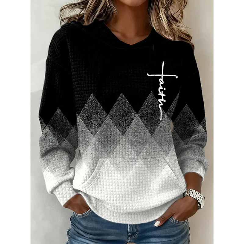Women's Pullover Hoodie Sweatshirt Graphic Geometric Warm Casual Print Long Sleeve Hooded Regular Tops Casual Street Dailywear Print Black Spring Fall