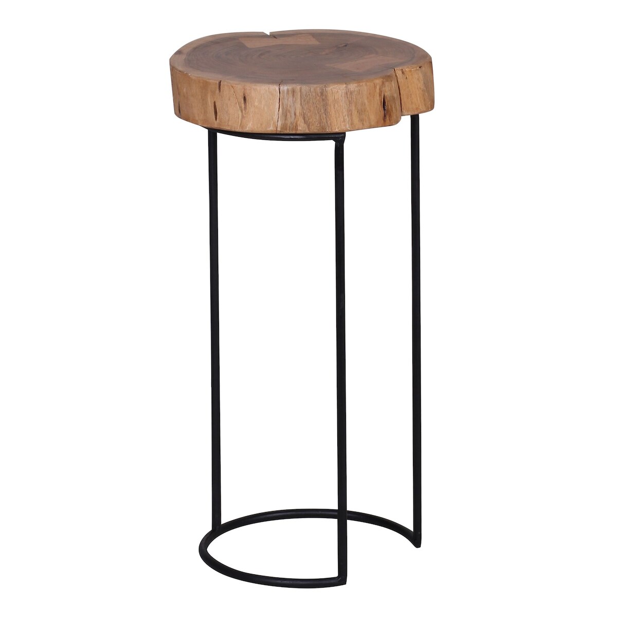 KADIMA DESIGN Couchtisch Sheesham Massivholz / Metall 60 x 40 x 60 cm, Wohnzimmertisch Rund Massiv Braun, Sofatisch Modern Holztisch, Tisch Wohnzimmer