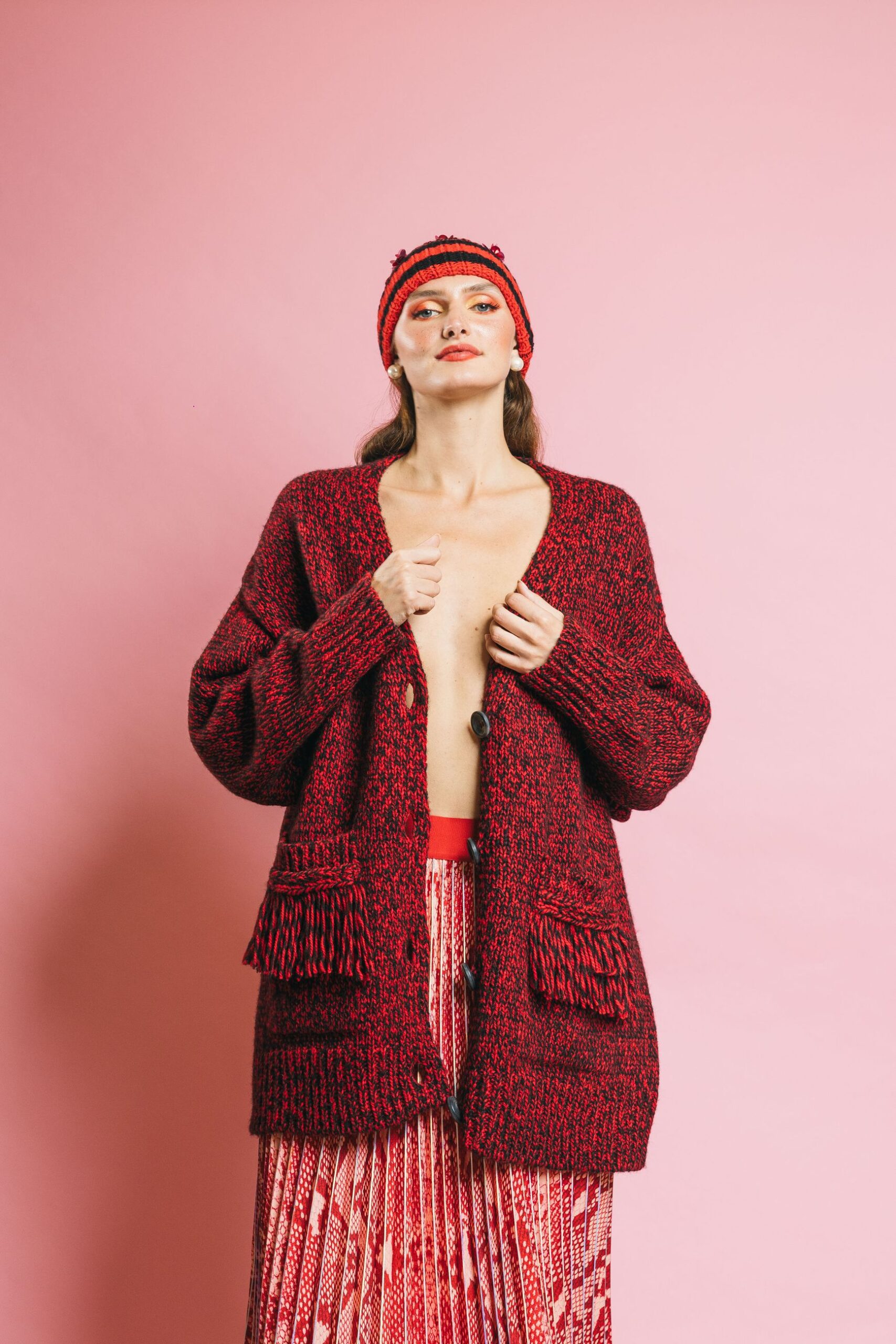 Inlace cardigan with lace maglieria essentiel antwerp red, l