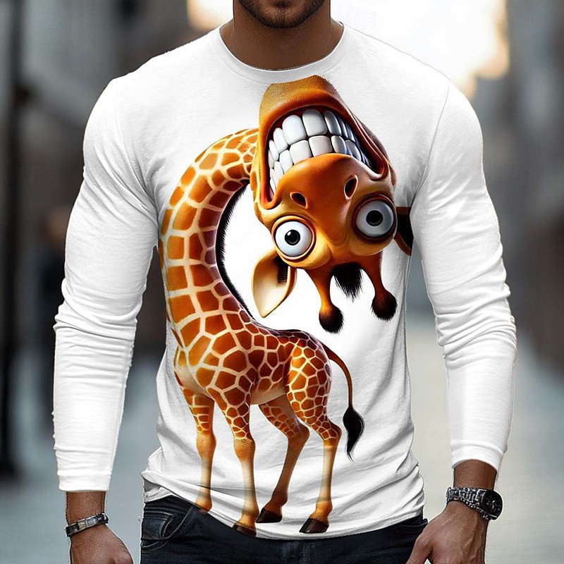 Men's Animal Giraffe Funny T Shirt Long Sleeve T shirt 3D Print Crew Neck Shirt Fashion Basic Casual Daily Street White Brown Khaki Summer Spring Clothing Apparel S M L XL XXL XXXL