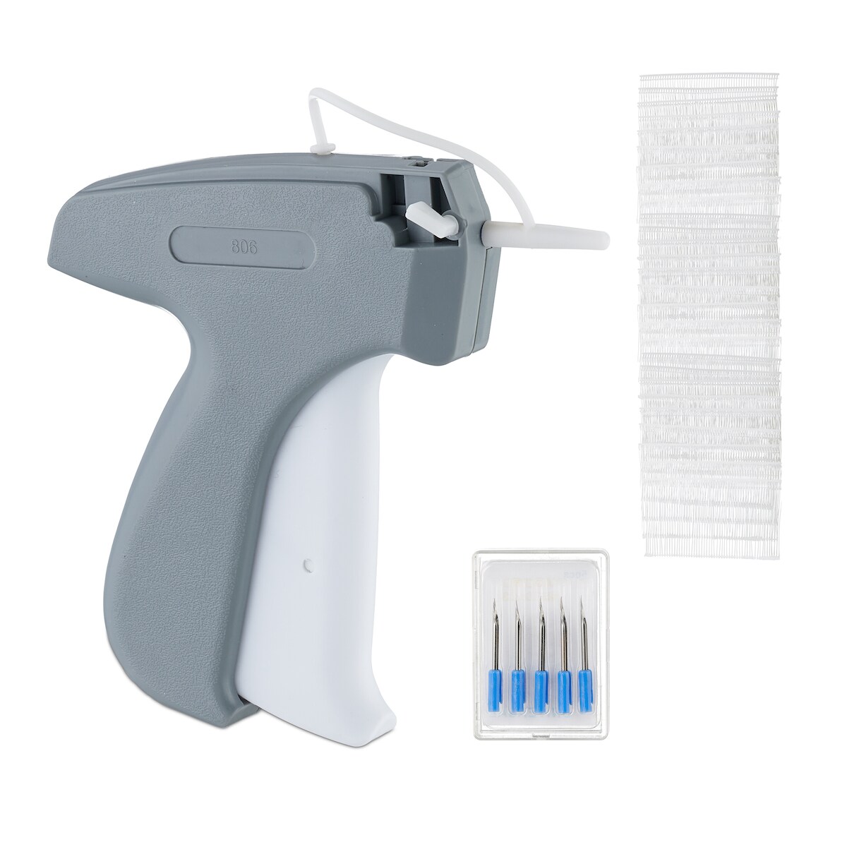 Relaxdays Etikettierpistole Kleidung, Heftpistole inklusive 5 Ersatznadeln & 5000 Heftfäden, Etikettiergerät, grau/weiß