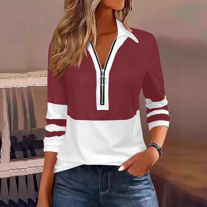 Women's Blouse Solid Color Stylish Casual Long Sleeve Crew Neck Regular Tops Daily Zipper Black White Wine Army Green Blue Spring Fall Winter