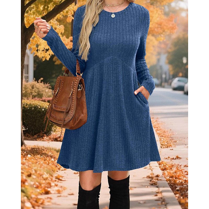 Women's Mini Dress Sweater Dress Elegant Fashion Modern Daily Holiday Going out Regular Fit Plain Long Sleeve Crew Neck Black Dark Blue Beige Fall Winter