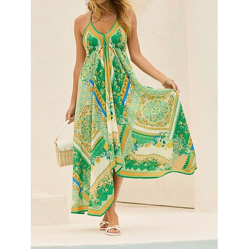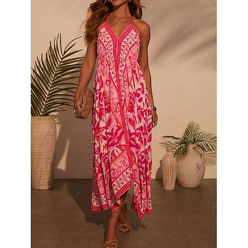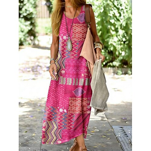 Per donna Abito maxi Abito a trapezio Abito a spalle scoperte Vacanza Casual Boho Uscire Vestibilità comoda Floreale Grafico Senza Maniche Girocollo Blu Giallo Rosa Estate Primavera