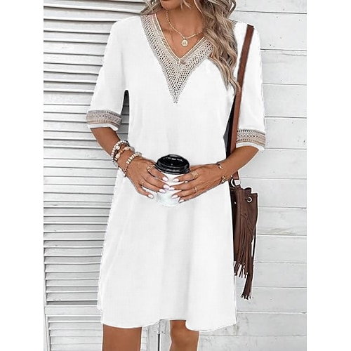 Per donna Abito al ginocchio Abito Bianco Vestito Casual Moda Moderno All'aperto Vacanza Uscire Vestibilità comoda Semplice Mezza Manica Scollo a V Blu Nero Bianco Arancione Estate Primavera
