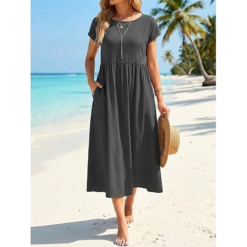 Per donna Abito Midi Finto cotone e lino Abito a Tubino Moda Moderno All'aperto Spiaggia Vacanza Vestibilità comoda Semplice Manica Corta Girocollo Nero Bianco Verde chiaro Rosa Estate Primavera
