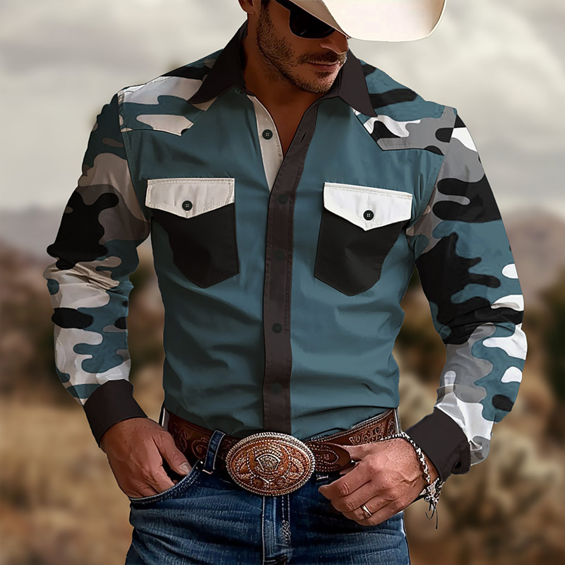 Men's Marble Western Shirt Long Sleeve Western Sports Outdoor Spring Fall Turndown Button Up 2 Pockets Blue Red Brown Green