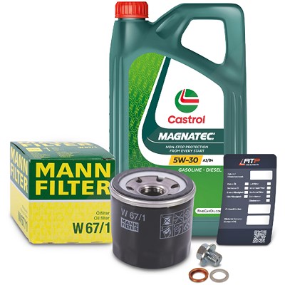 Mann-filter Ölfilter+Schraube+5 L Castrol Magnatec 5W-30 A3/B4 [Hersteller-Nr. 10491796] für Nissan, Infiniti, Renault