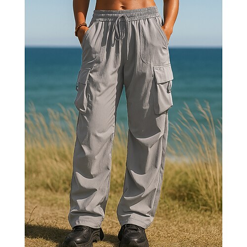 Per uomo Pantaloni di Lino Pantaloni Pantaloni Estivi Pantaloni Larghi Pantaloni da Spiaggia Coulisse Elastico in vita Gamba Dritta Semplice Comodità Traspirante Lunghezza intera All'aperto