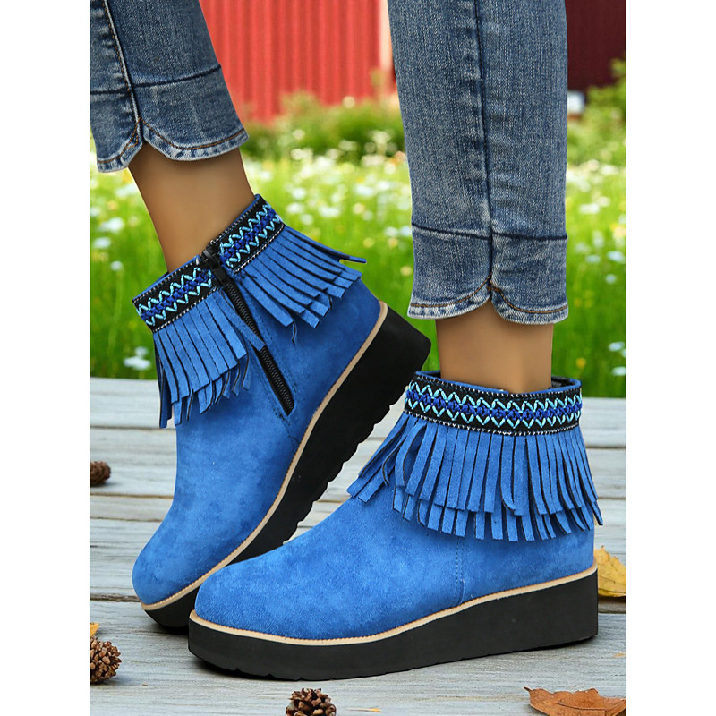 Women's Brown Faux Suede Fringe Wedge Ankle Boots – Western Style Casual Shoes for Garden Strolls, Fall Festivals Farm Days