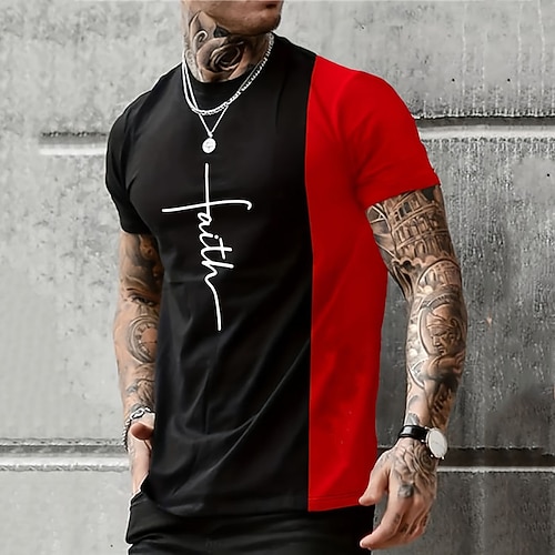 Maglietta a Blocco di Colore con Grafica della Bibbia per Uomini T-Shirt Cristiane Maglietta a Maniche Corte Maglietta a Stampa 3D Collo Giro Vintage Moda Designer Abbigliamento Sportivo Esterno
