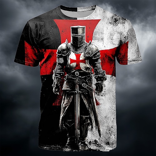 Maglietta T-Shirt All Over Print di Armatura Medievale dei Crociati Cavalieri Templari per Uomini Croce Rossa Divisa Nera Bianca Guerriero Grafica a Maniche Corte Collo Giro Retro Top Abbigliamento