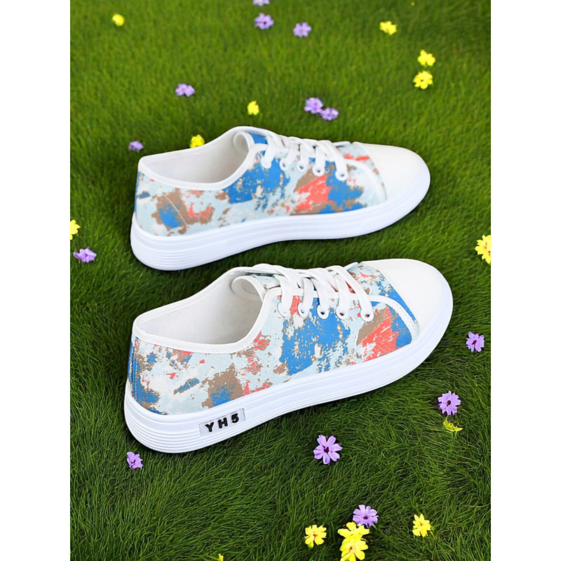 Women's Colorblock Canvas Sneakers – Lightweight Lace-Up Casual Shoes for Daily Wear, Travel and Street Style