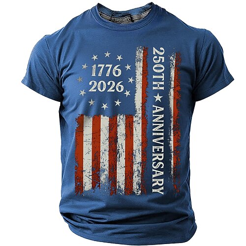 4 luglio 2026 250° Giorno della Memoria Maglietta da Uomo con Stampa 3D Bandiera USA Girocollo a Manica Corta Quotidiana da Strada
