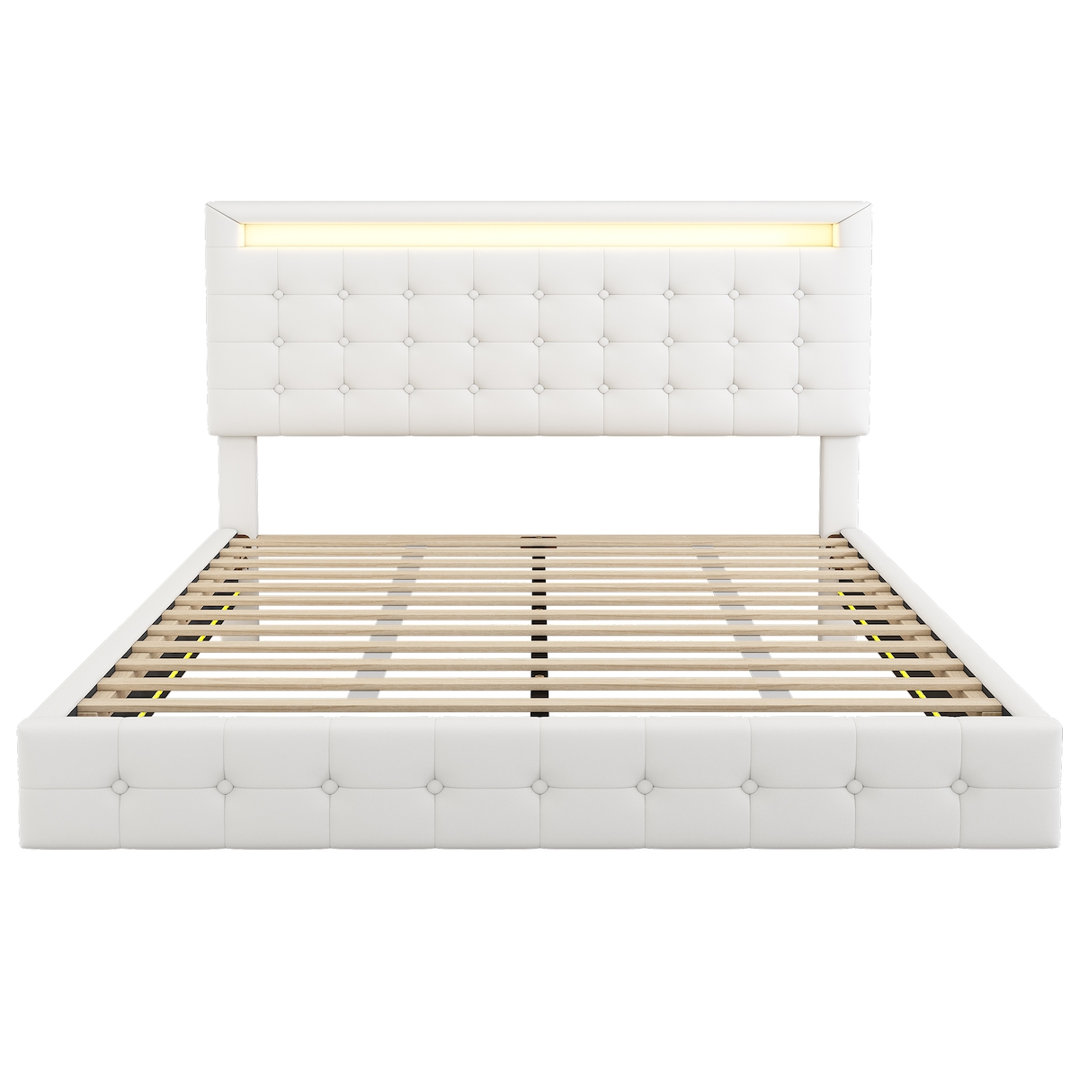 Merax 140*200cm Polsterbett, LED-Umgebungslicht, 24-Tasten-Fernbedienung, PU-Material, dreistufige Höhenverstellung des Kopfteils, Weiß