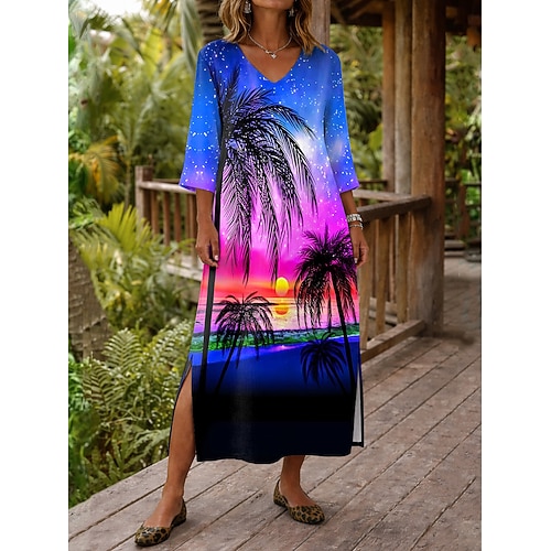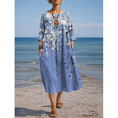 Per donna Abito maxi Abito a trapezio Casual Quotidiano Data Uscire Vestibilità comoda Floreale Grafico Manica 3/4 Girocollo Blu Verde chiaro Viola Verde Estate Primavera
