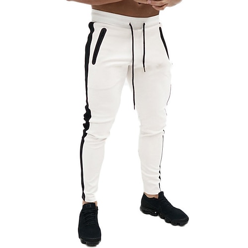 Per uomo Pantaloni della tuta Pantaloni Collage Tasche A cordoncino Color Block Comfort Sportivo Giornaliero Informale Nero Bianco Media elasticità