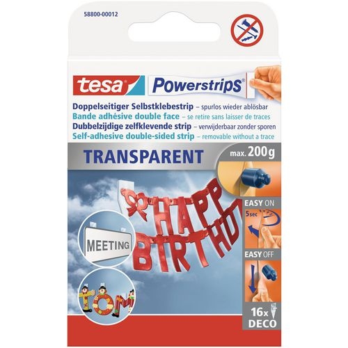 tesa Doppelseitiges Klebeband Powerstrips Transparent 15 mm (B) x 0,081 m (L) Synthesekautschuk 16 Stück