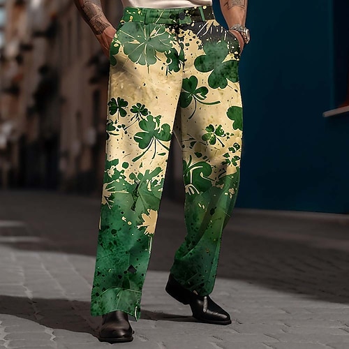 Festa di San Patrizio Per uomo Quadrifoglio Trifoglio Bandiera irlandese Pantaloni Pantaloni Eleganti Pantaloni da Abito Misura del girovita medio Moda Casual Ferie Pantaloni eleganti con vestibilit