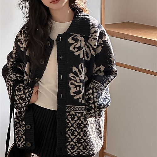 Kinder Mädchen Strickjacke Blumen Outdoor Langarm Knopf hoch Mode 4-12 Jahre Herbst Schwarz