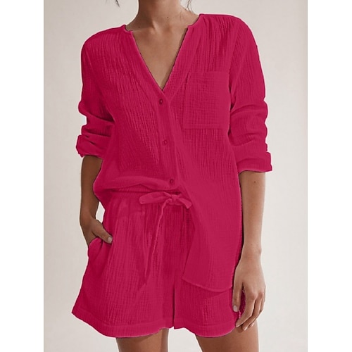 Per donna Abbigliamento da Casa Set Pigiama Moda Casual Morbido Colore Puro Patchwork Elastico in vita Bottoni Shorts Casa Vacanza Manica Corta Bavero Rosa chiaro Nero Bianco Champagne Rosa Estate