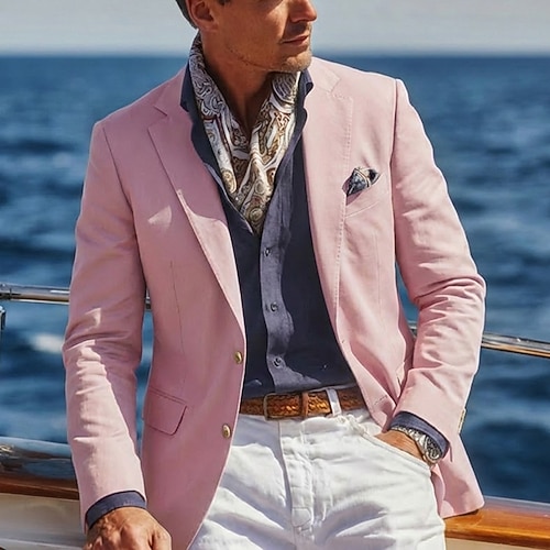Per uomo Blazer di Lino Colletto ad incastro Moda Leggero Tinta unita Blazer Blazer in lino Bianco Rosa Azzurro cielo Vestibilità su misura Monopetto Due Bottoni