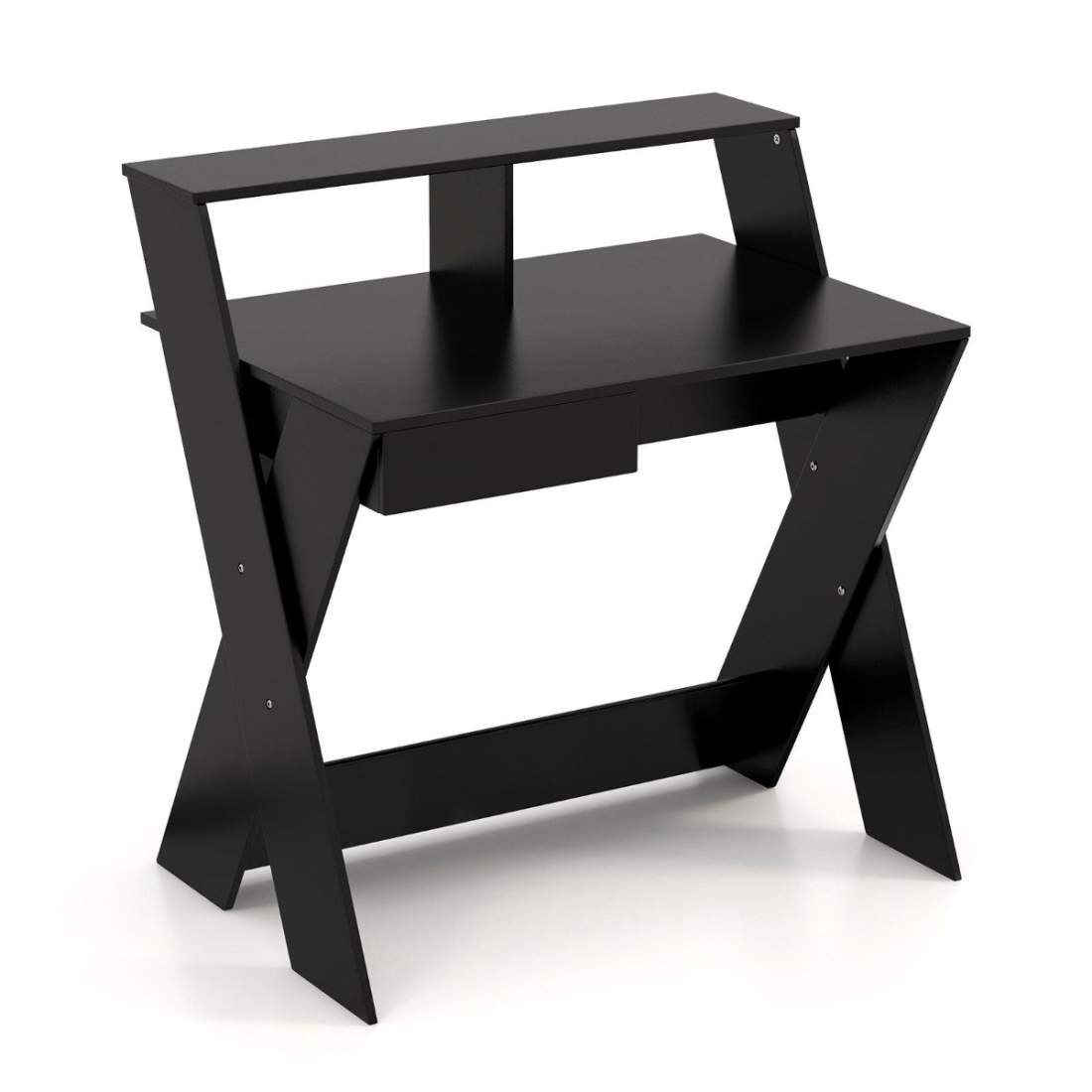 X-formet computerskrivebord med skuffe & monitor stiger skrivebord sort