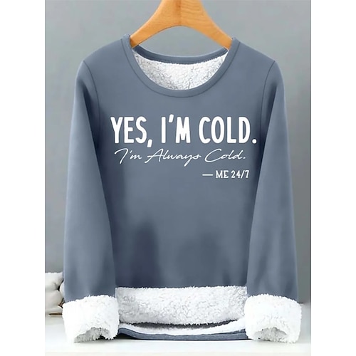 Per donna Pigiama felpato foderato in pile Lettera Caldo Morbido Manica Lunga Girocollo Top lunghi Casuale Sportivo Nero Giallo Rosa Rosso Blu Autunno Inverno