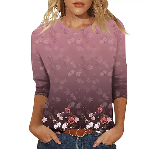 Per donna Blusa Floreale Elegante Manica 3/4 Girocollo Top Regolari Quotidiano Ferie Stampato Nero Verde chiaro Blu marino Viola Verde Estate