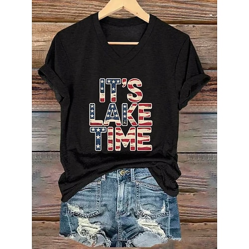 Giorno dell'Indipendenza Americana Per donna Maglietta Grafico Bandiera Americana Vintage Elegante Etnico Manica Corta Scollo a V Top Regolari Quotidiano Uscire Abbigliamento mare Stampato Nero