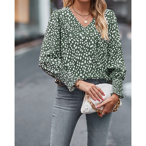 Per donna Blusa A Pois Attivo Elegante Manica Lunga Girocollo Top Regolari Ferie Uscire Patchwork Rete Nero Bianco Estate Primavera