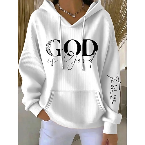 Per donna Felpa con cappuccio Grafico Lettera Casual Manica Lunga Con Cappuccio Top Regolari Casuale Abbigliamento Quotidiano Sportivo Blu Nero Bianco Rosa Primavera Autunno