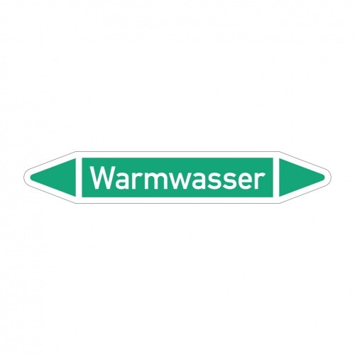 Aufkleber I RKZ-Etikett Warmwasser,DIN 2403,grün/weiß,für Ø 25-40mm,154x26mm,5/Bogen