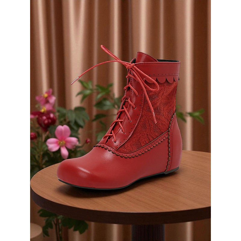 Women's Red Lace-Up Dance Boots with Mesh Panels and Low Heel, Ideal for Jazz, Ballroom, and Latin Dance Performances