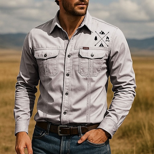 Per uomo Grafico Camicia da lavoro Camicia Western Camicia cargo Manica Lunga Casual Pantaloni Tattici Sport Outdoor Uscire Primavera Collo ripiegato Cardigan con Bottoni camicie con colletto Bianco