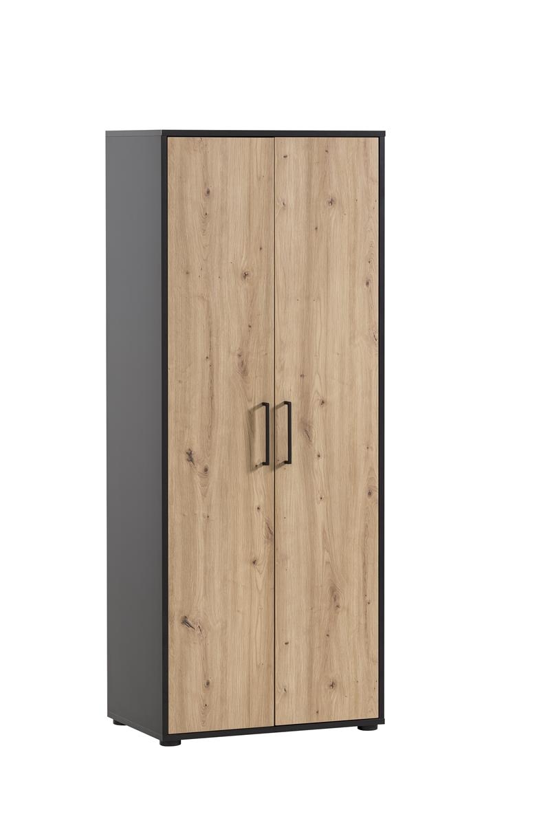 Möbelpartner Aktenschrank Raven | Tall | HxBxT 164x65x41cm | 4 Fächern & 2 Flügeltüren | Eiche/Schwarz | Büroschrank von PROREGAL