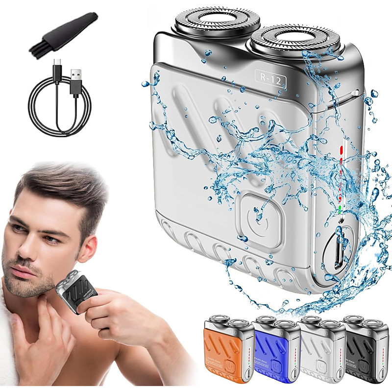 Portable Rotary Dual Ring Electric Shaver, Mini Beard Shaver with Suitcase Design, Waterproof Travel Electric Razor for Men, Fast Charging Long Battery Life Double-Ring Magnetic Cutter
