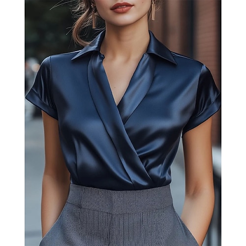 Per donna Camicia Elegant Raso/Satin Top estivi Semplice Elegante Vintage Signore Senza Maniche Colletto a Camicia Top Regolari Quotidiano Lavoro Ferie Arricciato Patchwork Drappeggiato Blu Reale