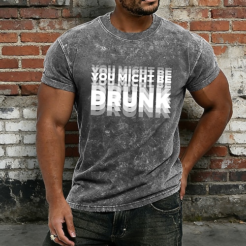 Vintage-T-Shirt für Herren mit Acid-Wash-Effekt und dem Aufdruck „Du könntest betrunken sein" – lustiges Trink-Shirt mit Doppelsicht-Motiv aus Baumwoll-Polyester-Mischgewebe (Mineral Wash) – Größen