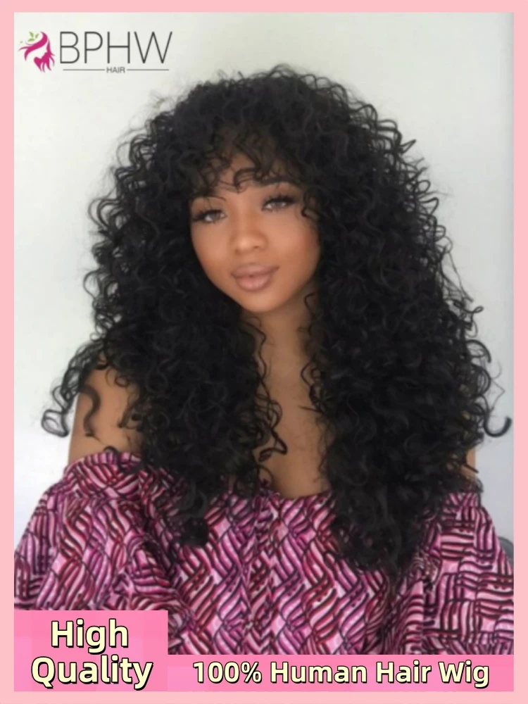 Curly bob Wig Human Hair With Bangs short curly Wig Human Hair None Lace Front bob Wigs Human Hair bob Wigs Human Hair For Black Women Natural Color
