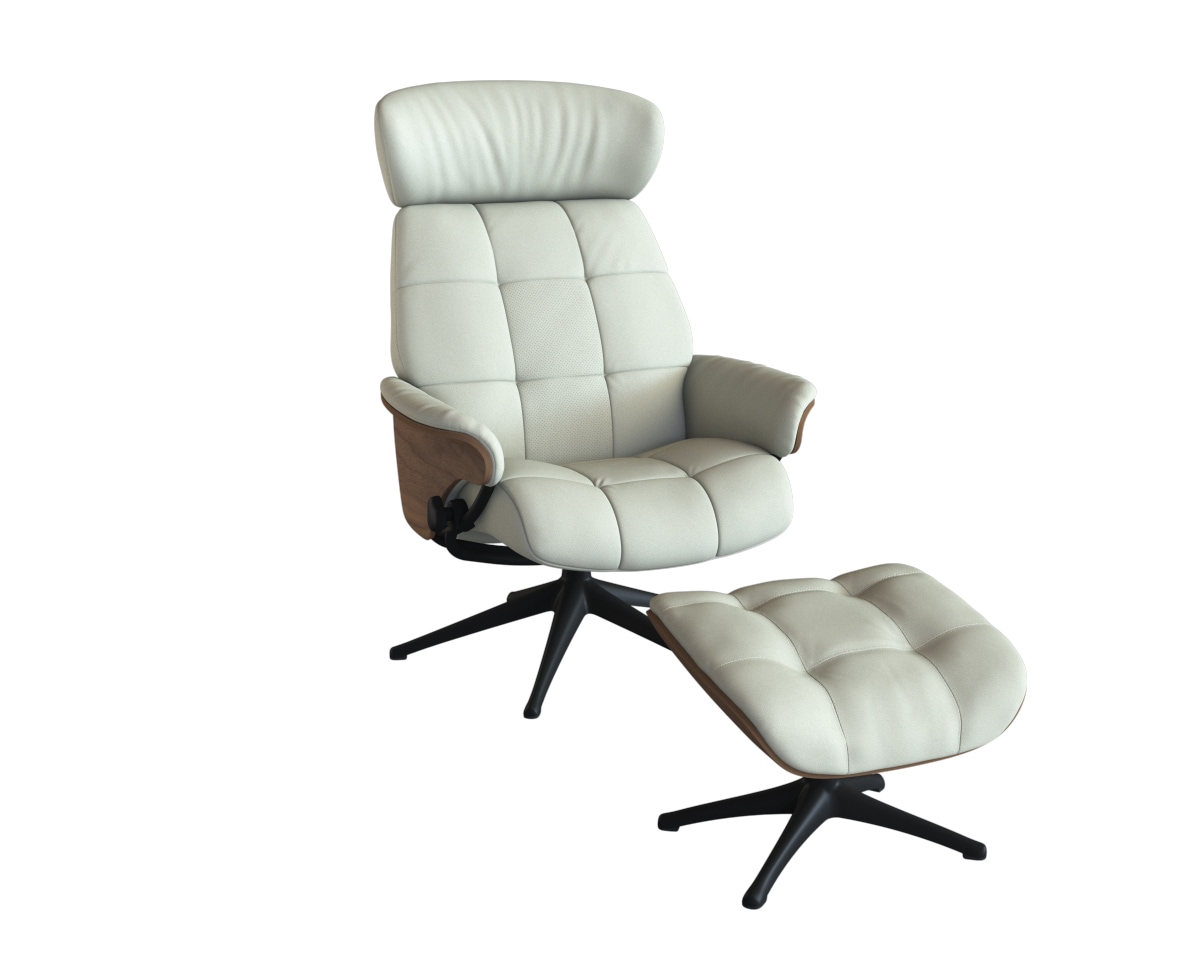 Relaxsessel FLEXLUX "Skagen, Funktionssessel, Premium-Komfort, Armlehnen, Drehbar, Scandi", weiß (warm weiß), B:82cm H:112cm T:87cm, 100% Echteder, Sessel, Rücken- und Kopfteilverstellung, Fuß Schwarz, Armlehne Eiche, Drehbar