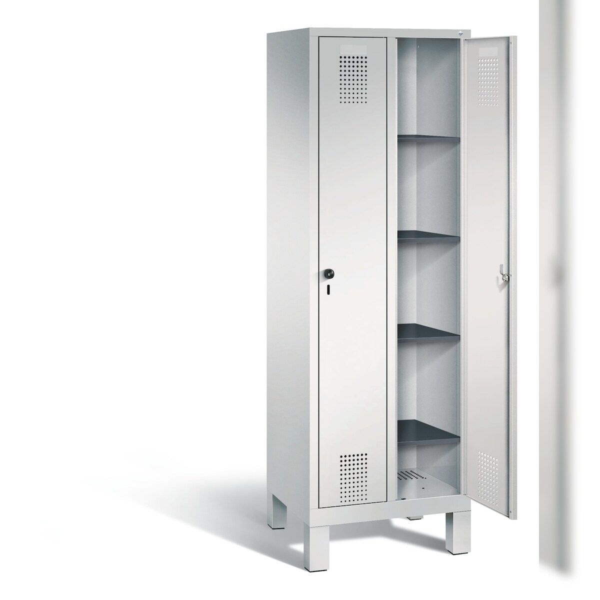 C+P Aufbewahrungs Doppel-Spind Classic PLUS, Sockel, 2 Abteile, 4 Fachböden, HxBxT 195x60x50cm, Zylinderschloss, Hellgrau/Fernblau von PROREGAL