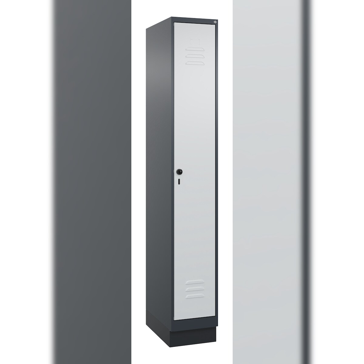 C+P Spind Classic PLUS, Sockel, 1 Abteil, HxBxT 195x30x50cm, Sicherheitsdrehriegel, Anthrazit/Hellgrau von PROREGAL