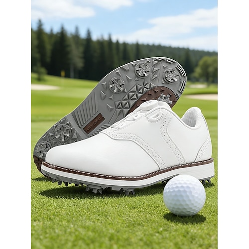 scarpe da golf bianche da donna – sneakers da golf con tacchetti antiscivolo, stile sportivo classico per il gioco sul campo e l'allenamento abbigliamento da esterno