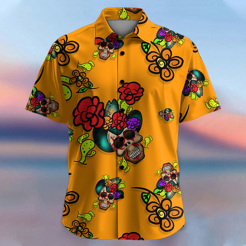 Men's Floral Skull Tropical Flowers Summer Hawaiian Shirt Button Up Shirt Aloha Shirt Short Sleeve Shirt Collared Shirts Hawaiian Casual Vacation Party Evening Wear Daily Purple Fuchsia Orange S M L