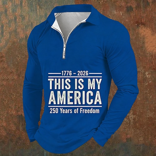 Giorno dell'Indipendenza Americana Per uomo Testo Polo Polo con zip Maglia da golf Manica Lunga Magliette polo Zip a un quarto Sport Moda Casual Quotidiano All'aperto Vacanza Cerniera Stampato