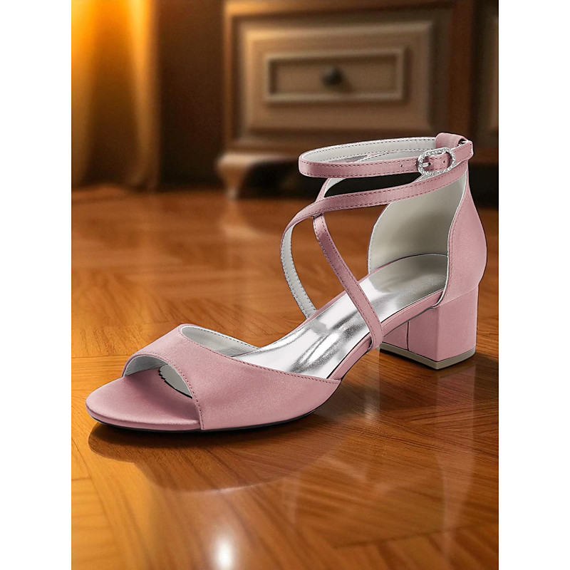 Women's Satin Block Heel Sandals with Ankle Strap - Elegant Open Toe Dress Shoes for Cocktail Party and Evening Outfits