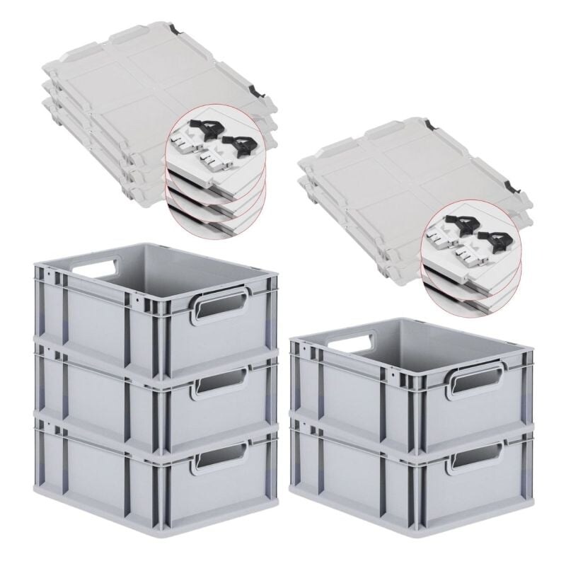 PROREGAL SuperSparSet 5x Eurobox NextGen Economy mit Scharnierdeckel & schwarzen Verschlüssen, Griffe offen, HxBxT 17x30x40cm, 16L, Eurobehälter