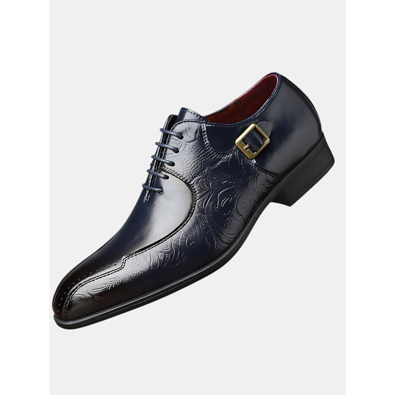 Luxury Men's Polished Tan Faux Leather Oxfords with Embossed Floral Pattern - Perfect for Formal Occasions and Business Meetings