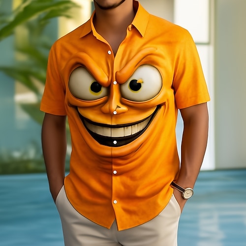 Per uomo Illusione ottica Fantasia Cartone 3D Faccia Sorridente Camicia Camicia con Bottoni Manica Corta Divertente All'aperto Ferie Estate Primavera Collo ripiegato Stampa 3D camicie con colletto